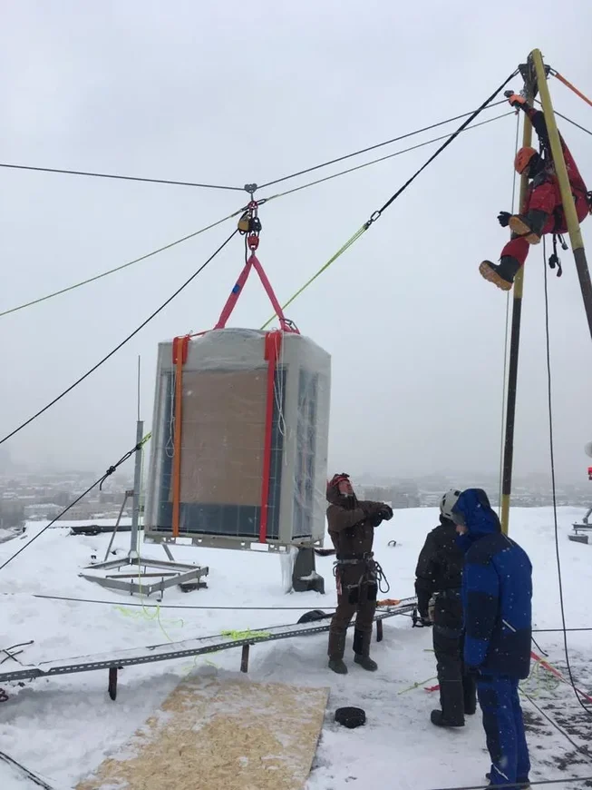 Работа была нестандартная, интересная, на крыше устанавливали шевру, и организовывали переправу из стального троса, вес одной установки составлял 300 килограммов.